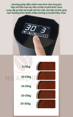 Tính năng: Tự động nén bột cà phê theo lực cài đặt, cảm biến độ phẳng